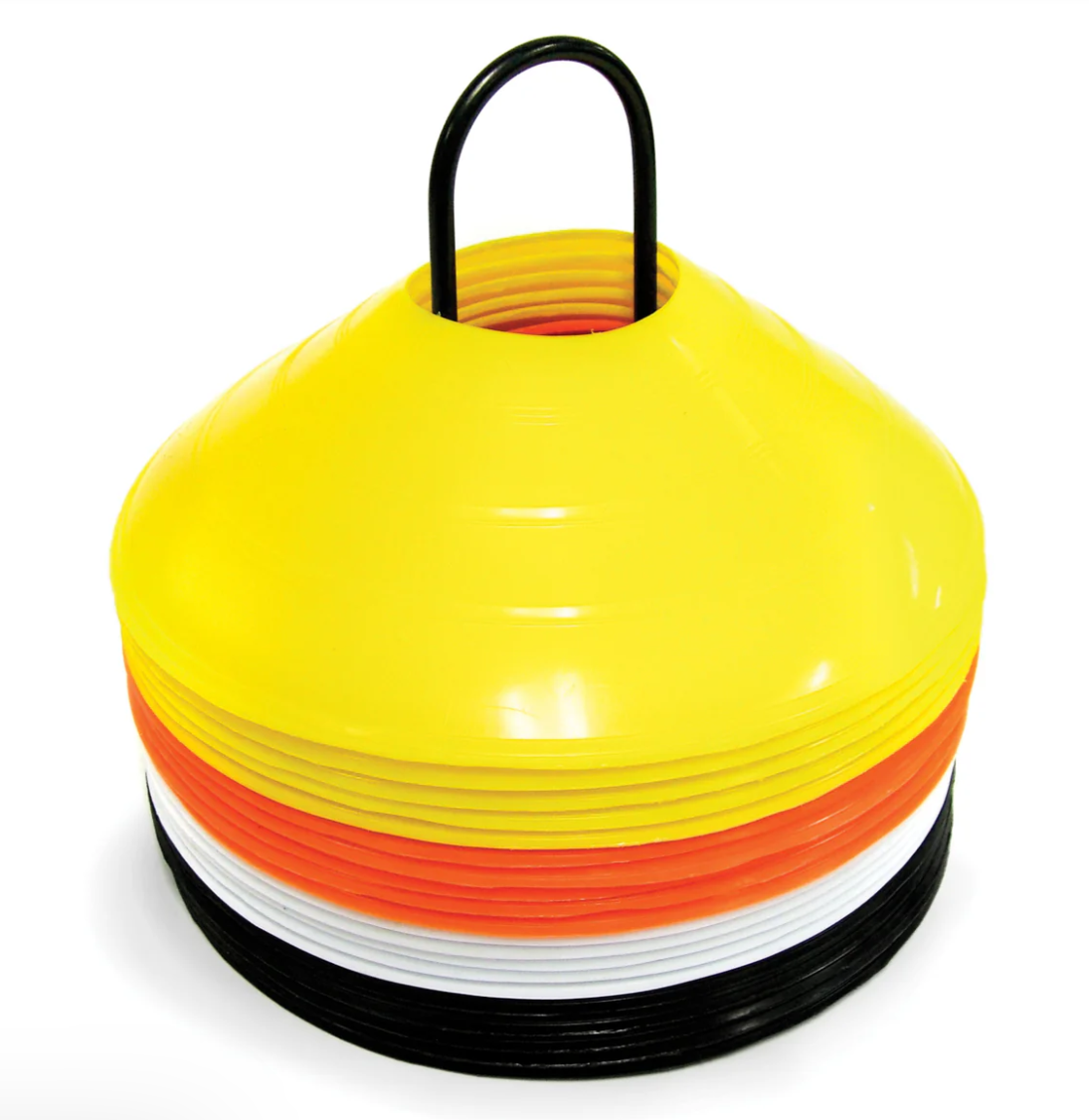 • Includes 20 cones – 5 each: yellow, black, white, orange